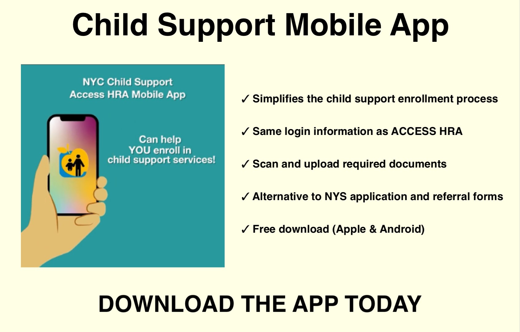 212-971-2731 to apply or get more information. The NYC Child Support ACCESS HRA Mobile App can help you enroll in child support services or submit a referral if you are receiving public benefits watch the videoAlternatively you can. Of Social Services Name.